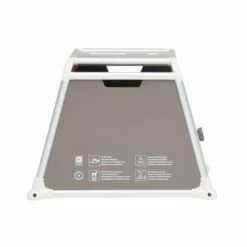 - Aluminium – høykvalitets materiale: Spesialutviklede aluminiumstenger gjør buret utrolig stabilt. Stengene er også anodisert for å forhindre rusting. All plast sammenkoblinger er glassfiberforsterket og derfor ekstremt robust. På grunn av kvalitetskontroll teknikken vil buret ikke skrangle eller lage forstyrrende støy når du reiser med bil.