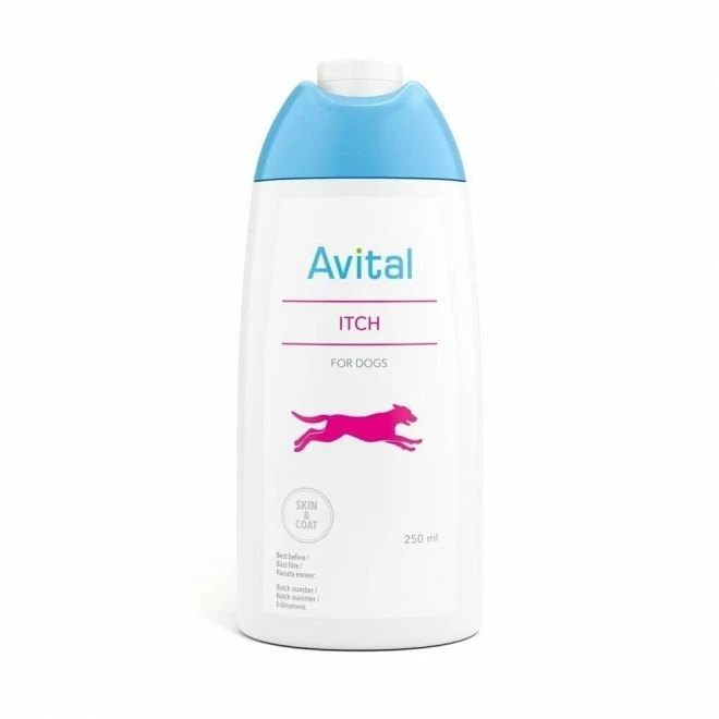 Bruk Avital Itch regelmessig minst én eller to ganger i uken for å dempe kløe og redusere atopiske symptomer. Tørk dyret grundig etter vask.