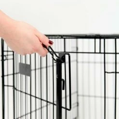 - Til tross for sin robuste konstruksjon er buret lett håndterlig og mulig å pakke sammen. Når det er pakket sammen blir det flatt og lett å bære med seg eller pakke vekk.