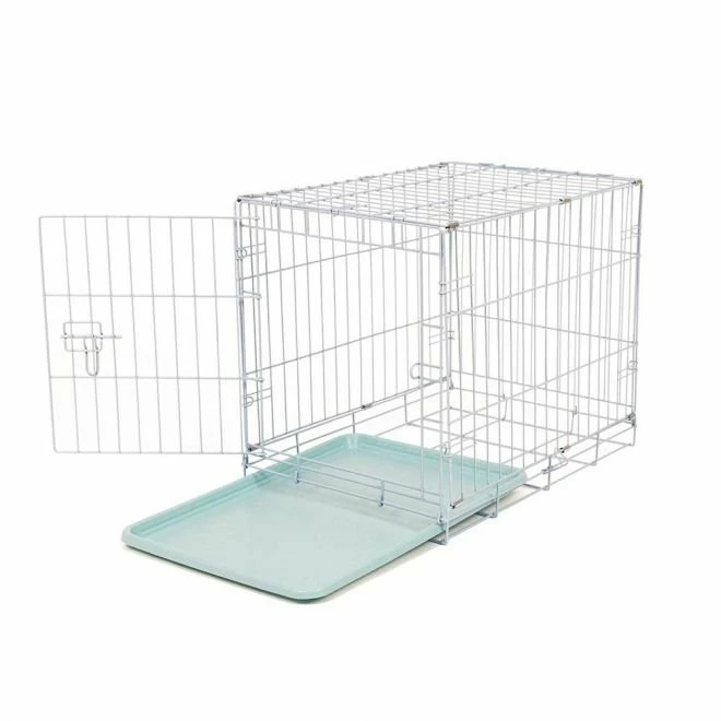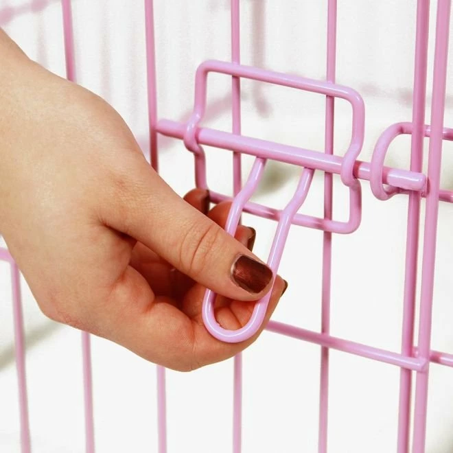 - Døren er utstyrt med et låsesystem som holder døren stengt og dyret på plass i buret.