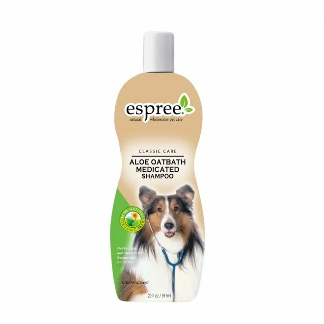 Espree Oat Bath sjampo hjelper mot eksem og tørr hud. Kløe og hudirritasjon kan virkelig plage hunden og gjøre livet ubehagelig for den. Denne terapeutiske sjampoen er full av havreprotein og aloe vera som gjenoppretter hudens naturlige balanse mens den renser og lindrer irritert hud.