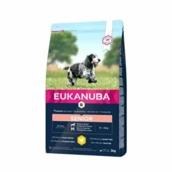 Eukanuba Senior Medium inneholder nøye utvalgte råvarer, med kun animalske proteinkilder. Nivåene av protein, fett og karbohydrater er anpasset til å matche en eldre hunds behov. Kalsium styrker skjelettet, og omega 3 og 6 fremmer en frisk pels og hud. Fôret passer til mellomstore hunder (10-25 kg) over 10 år.