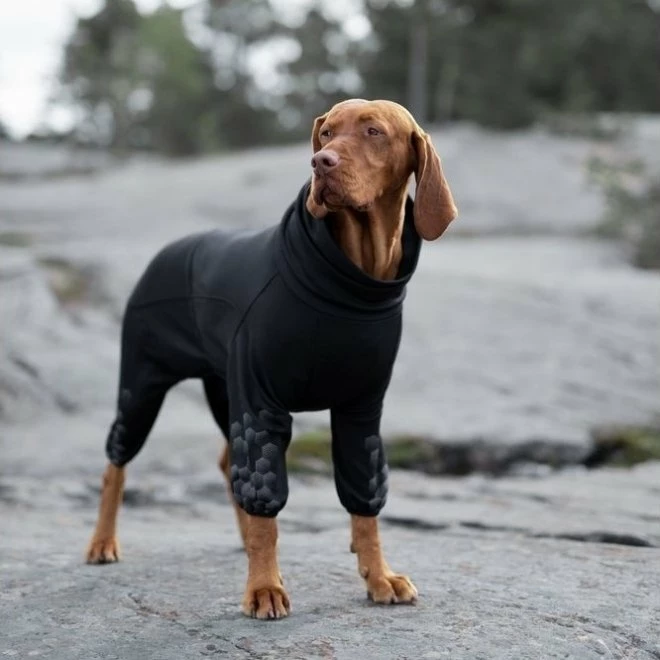 Feel Active Falun er en praktisk og komfortabel overall som er tilpasset det nordiske klimaet. Overallen har lange armer og bein, og dekker hundens store muskelgrupper. Den kan med fordel brukes som et mellomlag, men fungerer også utmerket alene. Det myke materialet med stretch gjør at overallen er komfortabel å ha på seg. Overallen har en åpning i ryggen slik at kobbelet enkelt kan festes i selen.