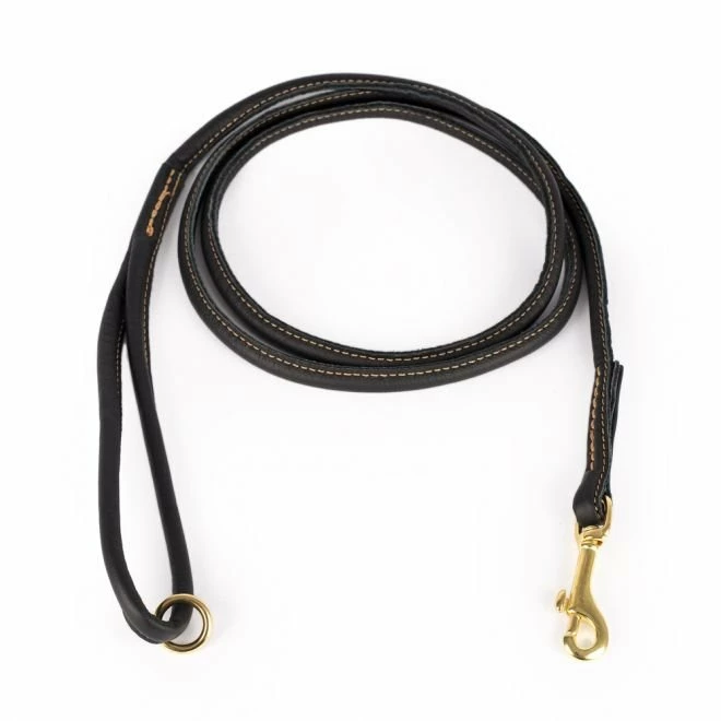 Det vakre rundsydde lærkobbelet med lyse sømmer og pistolhake av messing, passer utmerket til Feels halsbånd Brocarde og Ready.