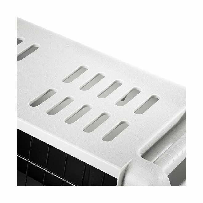 Laget av robust, men samtidig lett, plastikk. Buret har håndtak på toppen for lettere håndtering, og kroker på sidene som forsikrer at bunnen og toppen av buret holder seg godt sammen. Gitterdøra kan skyves åpen fra begge sider. I midten av døren er det en ekstra lås for å forsikre at den ikke kan åpnes fra innsiden.