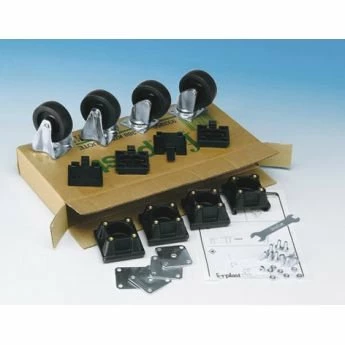 Pakken inneholder 4 stk hjul hvorav to er dreibare og to er faste.