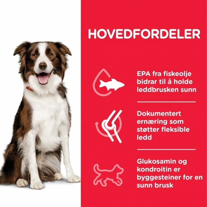 Hill’s Science Plan Dog Adult Healthy Mobility Medium Chicken er en hundemat som er tilpasset for å bidra til økt bevegelighet av voksne hunder av mellomstore raser. Hill’s Healthy Mobility inneholder omega-3 fettsyrer, antioksidanter og næringsstoffer som bidrar til å opprettholde hundens bevegelser. Hundefôret er laget av høykvalitets ingredienser med høy fordøyelighet og god smak.