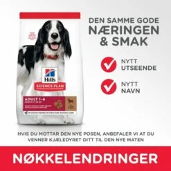 Hill’s Science Plan Dog Adult Medium Lamb & Rice er et velsmakende hundefôr for normalt aktive voksne hunder fra ett til sju år. Hill’s Science Plan Dog Adult Medium Lamb & Rice inneholder alle nødvendige næringsstoffer som hunden behøver og er basert på lettfordøyd lammekjøtt. Hundefôret inneholder en optimal balanse av Omega 3 og Omega 6 for å opprettholde en sunn og blank pels og er beriket med naturlige antioksidanter for å styrke hundens immunforsvar. Fôret produseres av høykvalitets proteiner som hjelper hunden med å opprettholde sin muskelmasse uten å gå opp i vekt.