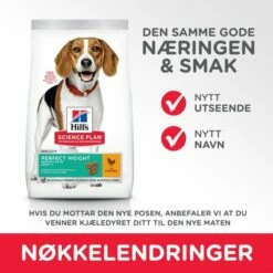 Fôret har et lavt fettinnhold og inneholder klinisk bevist næring for å hjelpe hunder å oppnå en sunn vekt. Perfect Weight inneholder prebiotiske fibre for å støtte hundens næringsopptak og opprettholde en skånsom fordøyelse. Fôret er fullt av sunne antioksidanter som er bra for immunforsvaret. Ingen kunstige smakstilsetninger, fargestoffer eller konserveringsmidler.