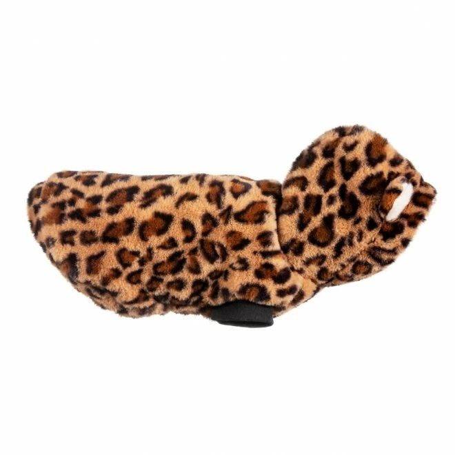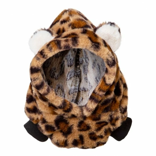 Deilig og myk genser til bestevennen din. Genseren er laget av mykt stoff av kunstig pels med samme mønster som en leopard. På hetten er det to ører som man ikke kan unngå å smile av.