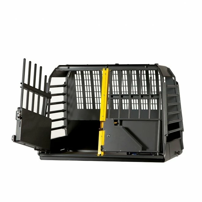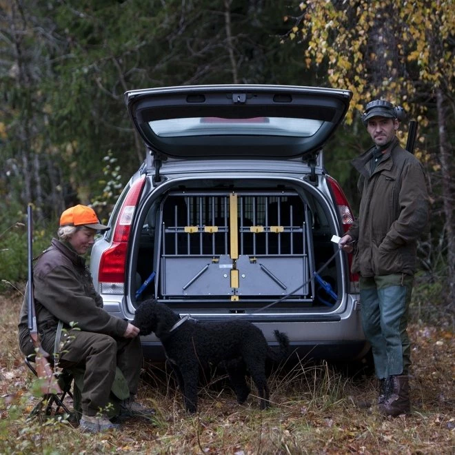 Til hvert dobbelbur følger det med en flyttbar vegg som deler hundeburet og gir mulighet for transport av to hunder eller en hund og bagasje. I tilfelle en nødsituasjon kan baksiden lett løftes bort for å åpne for nødutgang. MIM Variocage er svenskprodusert. Velg Variocage Dobbel dersom du har en hund eller flere hunder som trenger god plass.