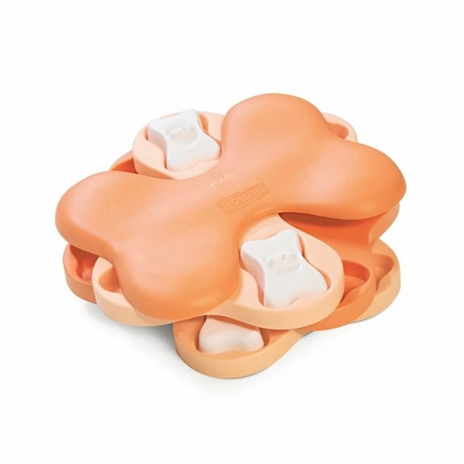 Nina Ottosson Puppy Tornado Aktiviseringsleke til valp består av fire forskjellige brett som kan snurres. På de tre nedre brettene er det rom hvor du kan gjemme godbiter eller tørrfôr. Ved å snurre brettene kan hunden din få tilgang til rommene. Rommene er dekket med beinformede lokk, og fjerner du disse vil det være lettere for hunden å nå godteriet, ettersom han eller hun bare vil trenge å snurre brettene.