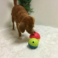Treat Tumble er en aktiveringslek der du fyller ballen med godteri eller fôr, og lar din hund kjempe med pote og nese for å komme til godsakene. Denne leken sysselsetter hunder som kjeder seg eller er urolige, og gir dem meningsfull stimulering, som kan bidra til å minske uønsket oppførsel og uro. Aktiveringsspillet er på nivå 1, det vil si den laveste vanskelighetsgraden og er en perfekt leke å begynne med når man skal begynne å introdusere sin hund for litt vanskeligere spill og leketøy. Treat Tumble forbereder din hund for mer mentale utfordringer, samtidig som dere har en morsom lekestund sammen.