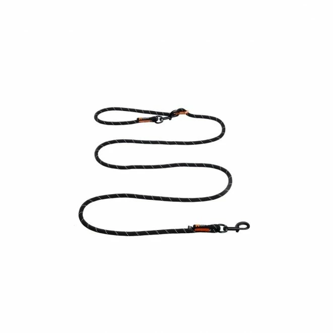 Non-Stop Rock Justerbart kobbel har en pistolkrok i hver ende. Den ene fester du til hundens halsbånd eller sele, og den andre fester du til metallspennen på kobbelet for å lage en løkke. Du kan enkelt flytte metallspennen langs kobbelet, og på denne måten justerer du lengden.