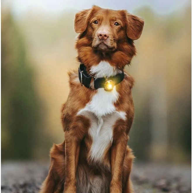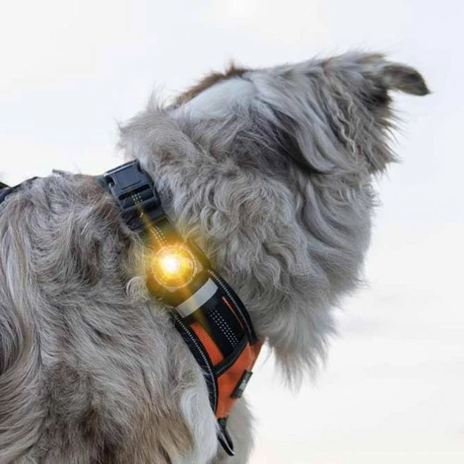 Orbiloc Dual Safety Light er en type sikkerhetsbelysning som man fester til hundens halsbånd og synlig meget godt på lang avstand (opptil 5 km). Selv om den er liten og veier bare 19 gram og er derfor også egnet for mindre hunder. Du kan velge mellom konstant lys eller blinkende lys, den tåler vann og både ekstrem varme og kalde temperaturer og har en lang batterilevetid. Pakken inkluderer en elastisk og slitesterk gummiholder som man fester lampen i. Festeøyene på holderen kan tres på et smykke som er opptil 24 mm bredt og 4 mm tykt. Produktinformasjon: Sikt 5 km. Vanntett ned til 100 m. Støtsikker opp til 100 kg. 2 moduser – konstant lys og blinkende lys. Lang batterilevetid – 100 timer med kontinuerlig lys og 250 timer med blinkende. Formen på linsen gjør at lyset er synlig i 270-graders vinkel. Takler vanskelige temperaturer på 50 °C til -40 °C
