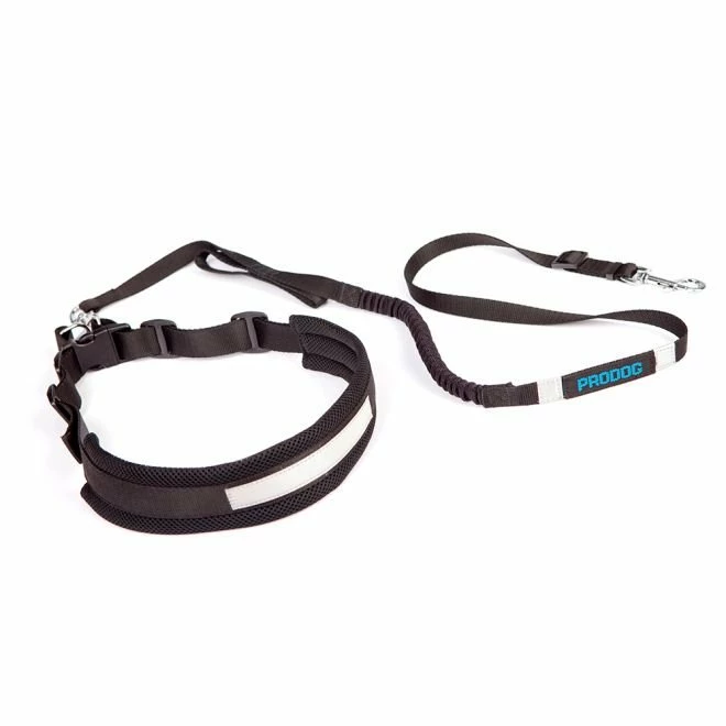Pro Dog Handsfree-settet inneholder et justerbart polstret belte samt et kobbel i elastisk nylon.