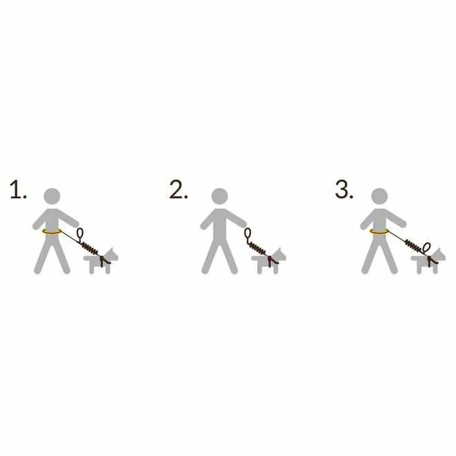Man kan også bruke kobbelet slik at håndtaket er på førerens side. Da får man et godt tak også når kobbelet ikke er koblet fast i beltet. Kobbelet kan også festes slik, at håndtaket er på hundens side. Da hjelper det med å holde kontrollen i krevende situasjoner, som for eksempel når man møter andre. Når kobbelet er koblet til beltet, holder håndtaket seg i et fint knippe som festes til kobbelet med en borrelås.