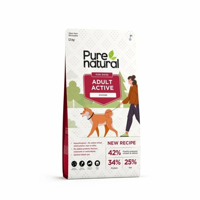 Purenatural Dog Adult Active Chicken er et kvalitetstfôr, tilpasset voksne aktive hunder.