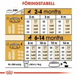 Royal Canin Breed Boxer Puppy er et fullfôr utviklet for boxer-valper (under 15 md), som takket være sine spesielle ingredienser støtter opp om en balansert utvikling av muskler og ledd. Den balanserte sammensetningen styrker valpens motstandskraft og holder tarmene friske. Pelletene planlagt for underbitte kjever gjør det lettere å gripe maten og tygge den bedre.