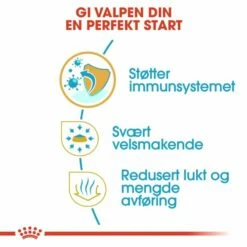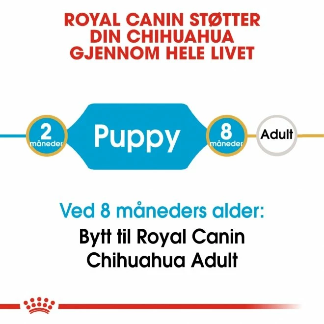 Royal Canin Breed Chihuahua Puppy er et hundefôr som er spesielt tilpasset for chihuahuavalper og lignende hunder som er yngre enn 8 måneder. Fôret stimulerer appetitten til den mest kresne chihuahuavalpen gjennom sin spesielle sammensetning av naturlige smaker i kombinasjon med en optimal størrelse og form på hundefôrets biter. Royal Canin Breed Chihuahua Puppy hjelper til med å styrke den unge chihuahuavalpens naturlige immunforsvar og reduserer gjennom sin unike sammensetning avføringens mengde og lukt.