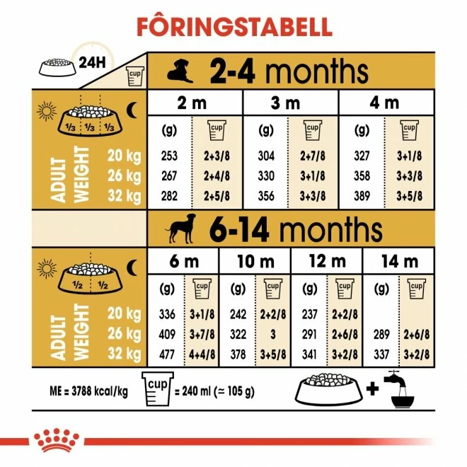 Royal Canin Dalmatiner Junior er et hundeforsom er spesielt tilpasset for unge dalmatinere opp til 15 måneder.Foretbidrar til friske urinveier takket være vel balanserte proteinkilder. En eksklusiv kombinasjon av næringsstoffer fremmer en sunn matfordøyelse og en balansert tarmflora, hvilket bidarr til å fremme valpens mage – og tarmhelse.Foretbidrar også til å bygge opp valpens naturlige forsvar takket være en patentert sammensetning av antioksidanter og prebiotika.Forbitenes størrelse, form og tekstur er tilpasset den unge dalmatineren.