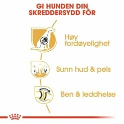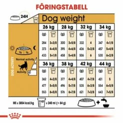 Royal Canin German Shepherd er et hundefôr som er spesielt tilpasset for schæfer og lignende hunder som er eldre enn 15 måneder. Royal Canin German Shepherd er spesielt skånsom for schæferens sensitive fordøyelse gjennom sin sammensetning av spesielt utvalgte proteiner med høy fordøyelighet, samt fibre som hjelper med å fremme en sunn bakterieflora. Royal Canin German Shepherd styrker også schæferens ledd samt sensitiv hud og pels gjennom sitt innhold av blant annet glykosamin, omega 3 og omega 6.