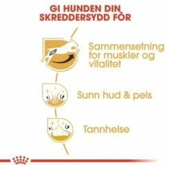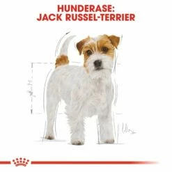 Royal Canin Breed Jack Russell Adult er et fullfôr for voksne og eldre, over 10 md gamle. Jack Russellterrieren er kjent for sin livlige væremåte. Takket være det tilpassede proteininnholdet støtter maten opp om vedlikeholdet av muskelmassen. Tilsetning av antioksidanter sikrer at hunden holder seg energisk. Jern bremser på dannelsen av tannstein ved hjelp av kalsiumbinderne. Formen, størrelsen, strukturen og sammensetningen til pelletene er tilpasset rasens behov. Støtter opp om hudens rolle som «en beskyttende mur» (en spesiell kombinasjon av næringsstoffer) og hjelper hunden med å holde huden frisk og sunn (EPA&DHA). Tilsatt agurkurtolje.