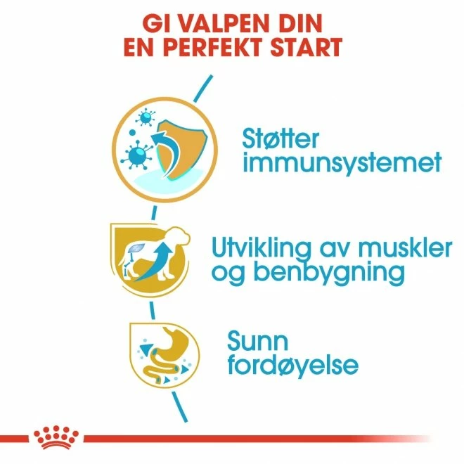 Royal Canin Rottweiler Junior er et hundeforsom er spesielt tilpasset Rottweiler og liknende hunder yngre enn 18 måneder. Royal Canin Rottweiler Junioor hjelper din Rottweilervalp med å bygge opp en stor muskelmasse samtidig som leddene beskyttes takket være et optimalt proteininnhold og høye nivåer av blant annet glukosamin og omega 3 – fettsyrer.Hundeforetsbiter er spesielt formet slik at Rottweilervalpen enkelt kan plukke dem opp, samtidig som formen på hundeforet stimulerer Rottweilervalpen til å tygge ordentlig. Royal Canin Rottweiler Junior bidrar til å styrke den unge Rottweilervalpens naturlige imunnforsvar, samt å opprettholde en velbalansert bakterieflora i tarmen.