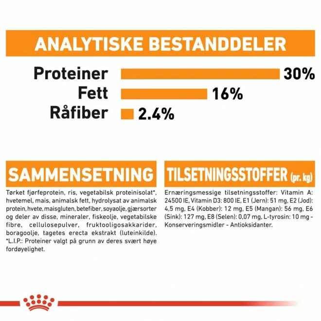 - Inneholder omega-3 och omega-6 som pleier huden og gir glansfull pels.
