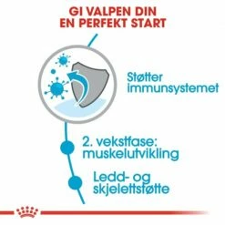 Royal Canin Giant Junior er et hundefôr som er spesielt utviklet for unghunder fra 8 måneder opp til 18/24 måneders alder som når de er voksne vil veie over 45 kg. Royal Canin Giant Junior er skånsomt for unghunden og bidrar gjennom sin sammensetning til å beskytte unghundens mage- og tarmkanal og gir dermed en bedre konsistens på avføringen. Hundefôrets biter er spesielt utformet for at den veldig store unghunden skal spise langsomt og stimuleres til å tygge, noe som fremmer munn- og tannhelsen samtidig som det reduserer risikoen for fordøyelsesproblemer. Royal Canin Giant Junior bidrar til å styrke unghundens naturlige immunforsvar og fremmer en god utvikling av både muskler og ledd gjennom tilsetning av blant annet glykosamin.