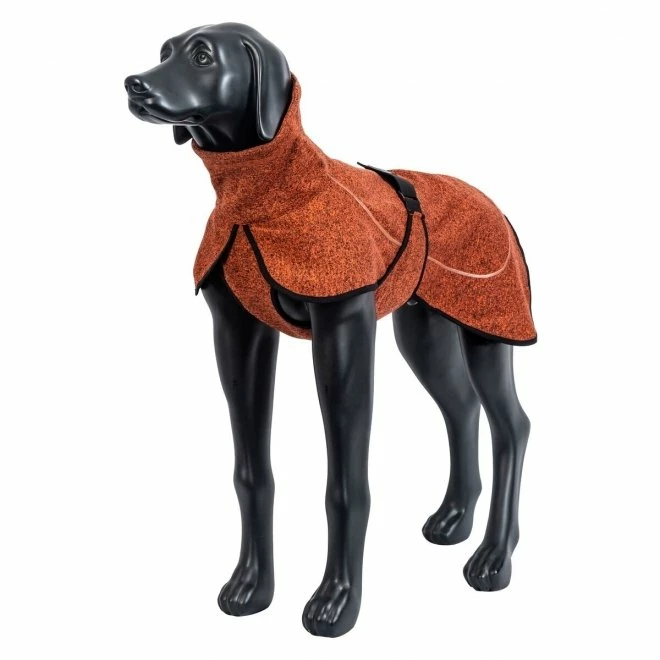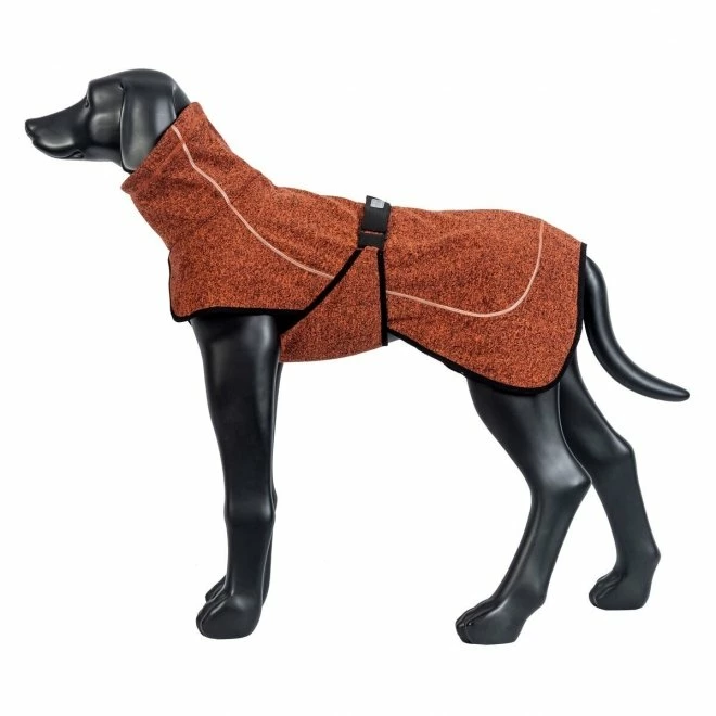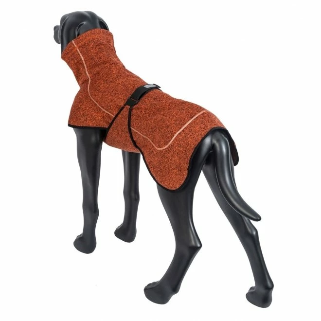 Den høye kragen holder hunden varm, og dekkens passform varmer hundens store muskelgrupper i kjølig vær.