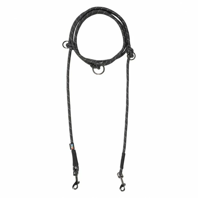 Rukka multikobbel er et svært allsidig bånd! Med de tre ringene er det lett å justere lengden på båndet. På grunn av dette kan du bruke båndet på en rekke måter; du kan ha det rundt livet, over skulderen, gjøre det til et mellomlangt bånd, langt bånd eller et kort bånd for situasjoner hvor du ønsker å være nærmere hunden din.