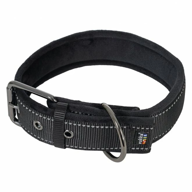 Dette brede halsbåndet gir mer støtte til hundens hals enn de tynne modellene. Det er paddet med en myk linning. Dette gjør halsbåndet mer behagelig samtidig som det ikke skader hundens pels.