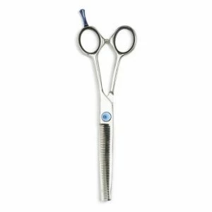 Show Dog Effelieringsaks er en dobbesidig taggete saks for tynning og trimming av hunder og katter. Effelieringsaksen er laget av rustfritt stål og er av meget høy kvalitet. Det ergonomiske håndtaket er behagelig å holde i og gir stabilitet ved klipping. Saksens hardhet er HRC 59-61 på 46 tenner.