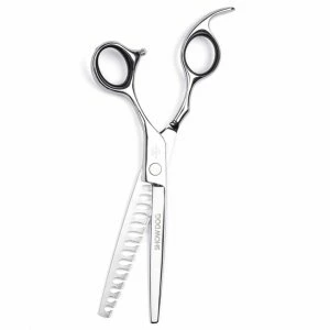Show Dog effileringssaks er en ensidig tannet saks for tynning og trimming av hund og katt. Saksen er produsert i rustfritt stål og er av veldig høy kvalitet. Det ergonomiske håndtaket er godt å holde i og gir stabilitet ved klippingen. Saksens hardhet ligger på HRC 59-61 46 tenner.