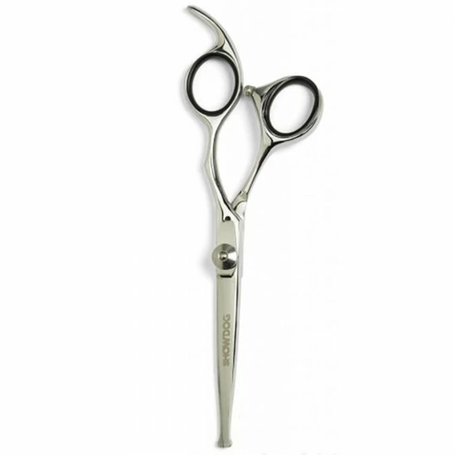 Trimsaks for potetrimming av hunder og katter. Saksen er produsert av rustfritt stål og er av veldig høy kvalitet. Det ergonomiske håndtaket er godt å holde i og gir stabilitet ved klippingen. Saksens hardhet ligger på HRC 56-57, som gir effektiv og myk klipping.