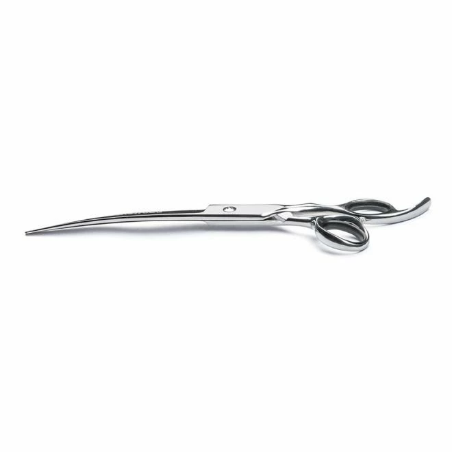 Høykvalitets trimsaks med bøyd håndtak. Show Dogs sakser er laget av rustfritt stål av høyeste kvalitet. Saksen er skarp og lett å håndtere, med et ergonomisk håndtak for komfort. Ca 20cm